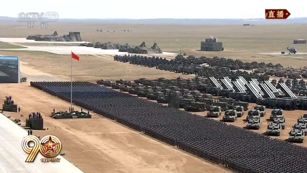 2017年7月30日上午9時(shí),中國(guó)人民解放軍以一場(chǎng)氣勢(shì)磅礴的沙場(chǎng)閱兵慶祝建軍90周年。在朱日和訓(xùn)練基地參加實(shí)戰(zhàn)化訓(xùn)練的三軍將士沙場(chǎng)列陣,以戰(zhàn)斗姿態(tài)接受中共中央總書(shū)記、國(guó)家主席、中央軍委主席習(xí)近平檢閱,接受黨和人民檢閱。