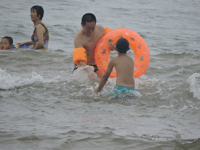 在大海中嬉戲的孩子們盡情的釋放天性,感受大海的無窮力量