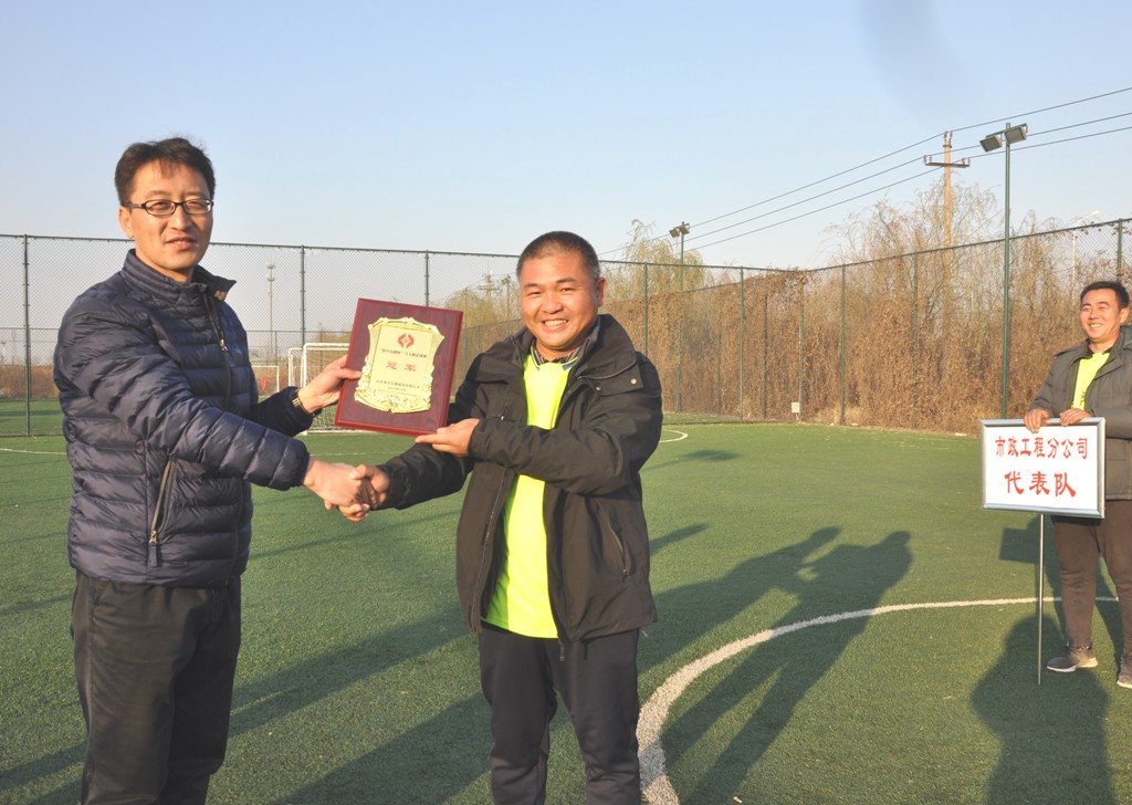 淄博市公路局改建辦張濤科長為獲獎隊伍頒獎。
