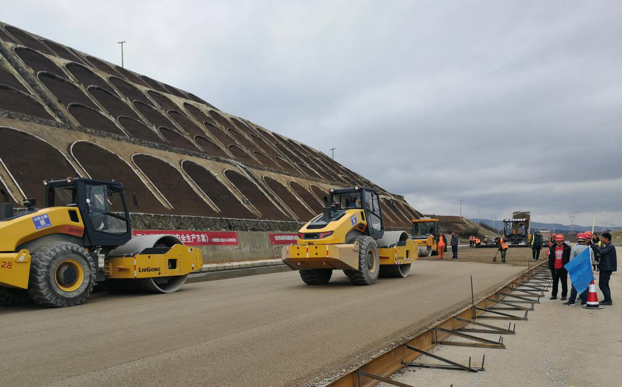 上午9點半,底基層試驗段正式開始施工?,F(xiàn)場攤鋪機、壓路機配合使用,施工人員嚴格按照工藝要求,邊鋪邊測量,邊鋪邊調(diào)整,及時總結(jié)數(shù)據(jù),做到施工標(biāo)準(zhǔn)化、規(guī)范化,路面咨詢單位和中心試驗室全程跟蹤現(xiàn)場檢驗。本次水穩(wěn)底基層試驗段位于K129+100—K129+700段,全長600米,厚度為26厘米。在攤鋪施工過程中,各科室緊密配合,自卸車不間斷輸送混合料,鋼輪、膠輪壓路機組合式碾壓,各工序嚴密銜接,經(jīng)過9個小時不間斷作業(yè),我部于當(dāng)天順利完成該試驗段施工任務(wù),平整度,壓實度等均達到規(guī)定要求,得到了中心試驗室及路面咨詢單位的認可。