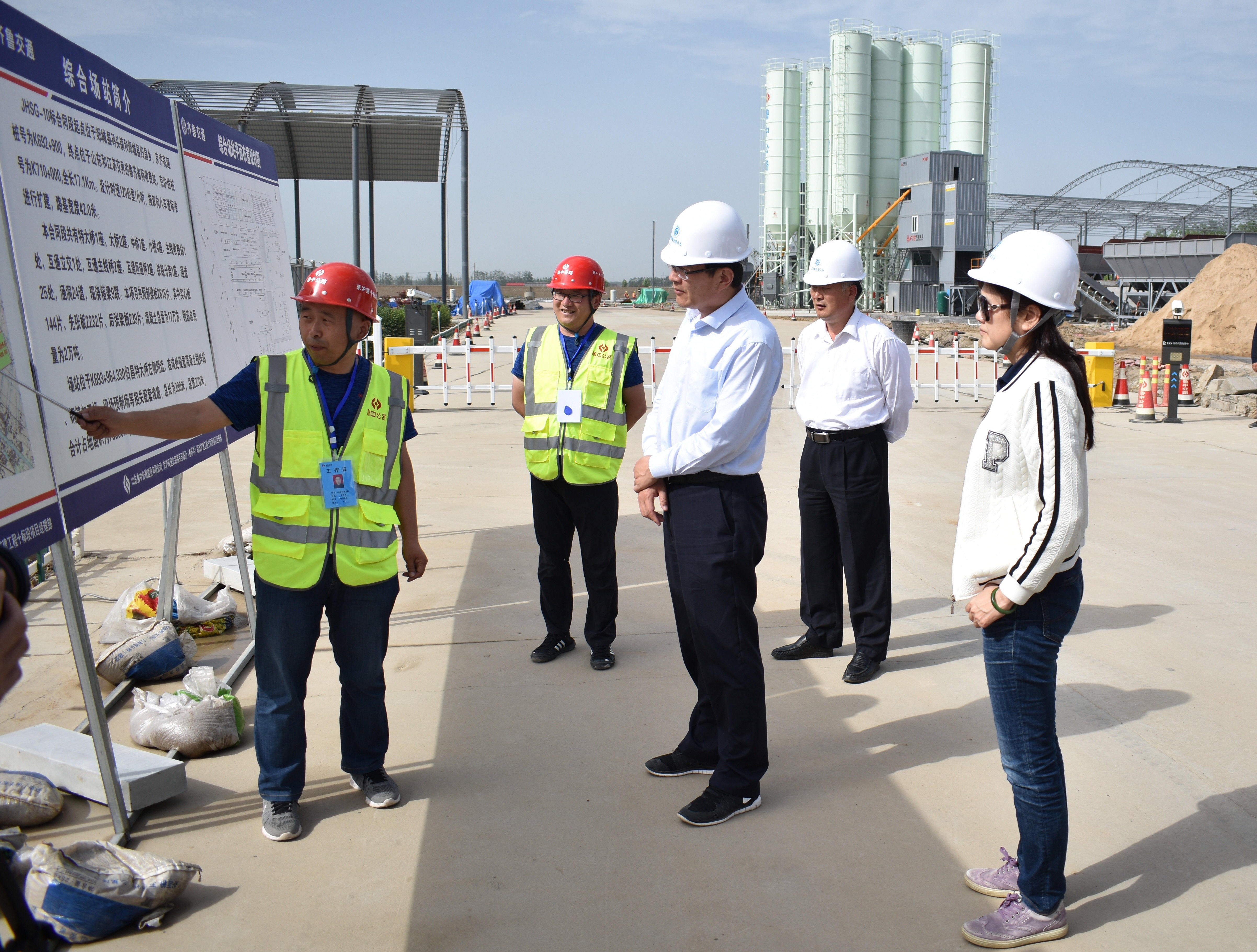 隨后,檢查組成員通過門禁系統(tǒng)進入場站,G2京滬項目經(jīng)理對當(dāng)前場站建設(shè)情況向檢查組進行了詳細介紹。目前,G2京滬項目部混凝土拌合站、預(yù)制梁場、鋼筋加工場綜合場站等場內(nèi)主道路已硬化完成,入口處洗車平臺已經(jīng)安裝就位,安全教育培訓(xùn)體驗館和車輛進出生產(chǎn)區(qū)的智能識別系統(tǒng)也已經(jīng)安裝完成。同時,工人入場智能識別系統(tǒng)和兩臺方圓HZS120混凝土拌合站均已調(diào)試完成并經(jīng)質(zhì)量監(jiān)督局標(biāo)定完成,其他如鋼筋加工場大棚框架搭建、梁場先張區(qū)龍門吊基礎(chǔ)澆筑、張拉臺座基本澆筑等已經(jīng)完成,料倉大棚和料倉隔墻正在澆筑過程中。