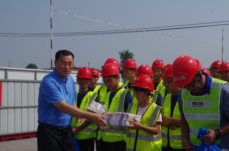 收尾工程現(xiàn)場施工員也是主動(dòng)干起了職業(yè)保健員的工作,主動(dòng)把防暑藥品發(fā)放到現(xiàn)場施工隊(duì)伍手中,看著汗水濕透衣背工人,隨時(shí)把飲用水遞給正埋頭工作的技術(shù)工人們。原來還是要?jiǎng)e人照顧的小青年,現(xiàn)在都已經(jīng)知道照顧別人了。經(jīng)開區(qū)路基施工白天氣溫太高不利于生產(chǎn),夜間水分揮發(fā)性小,項(xiàng)目部則充分利用晝夜溫差抓緊時(shí)機(jī)展開夜間施工。309改建工程,大家不顧高溫酷熱抓進(jìn)度趕工期,領(lǐng)導(dǎo)們看大家不顧高溫堅(jiān)守施工崗位,看在眼里,疼在心里,市交通局黨委書記、公路局黨委書記,市總工會(huì)領(lǐng)導(dǎo)等百忙之中也給大家送來防暑降溫物資,發(fā)放到員工手中,關(guān)心的話語更是給夏日里一線員工心中注入清涼。