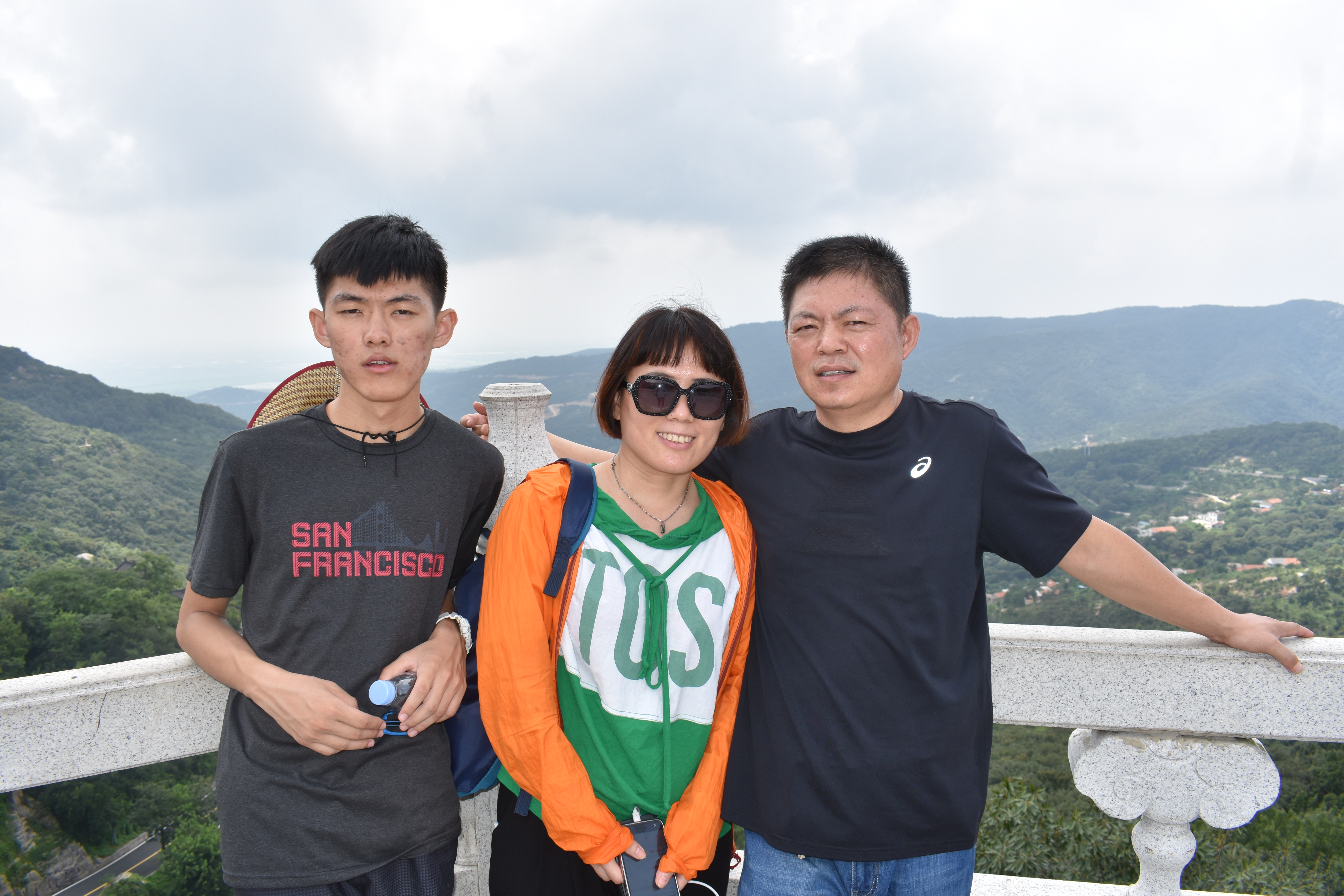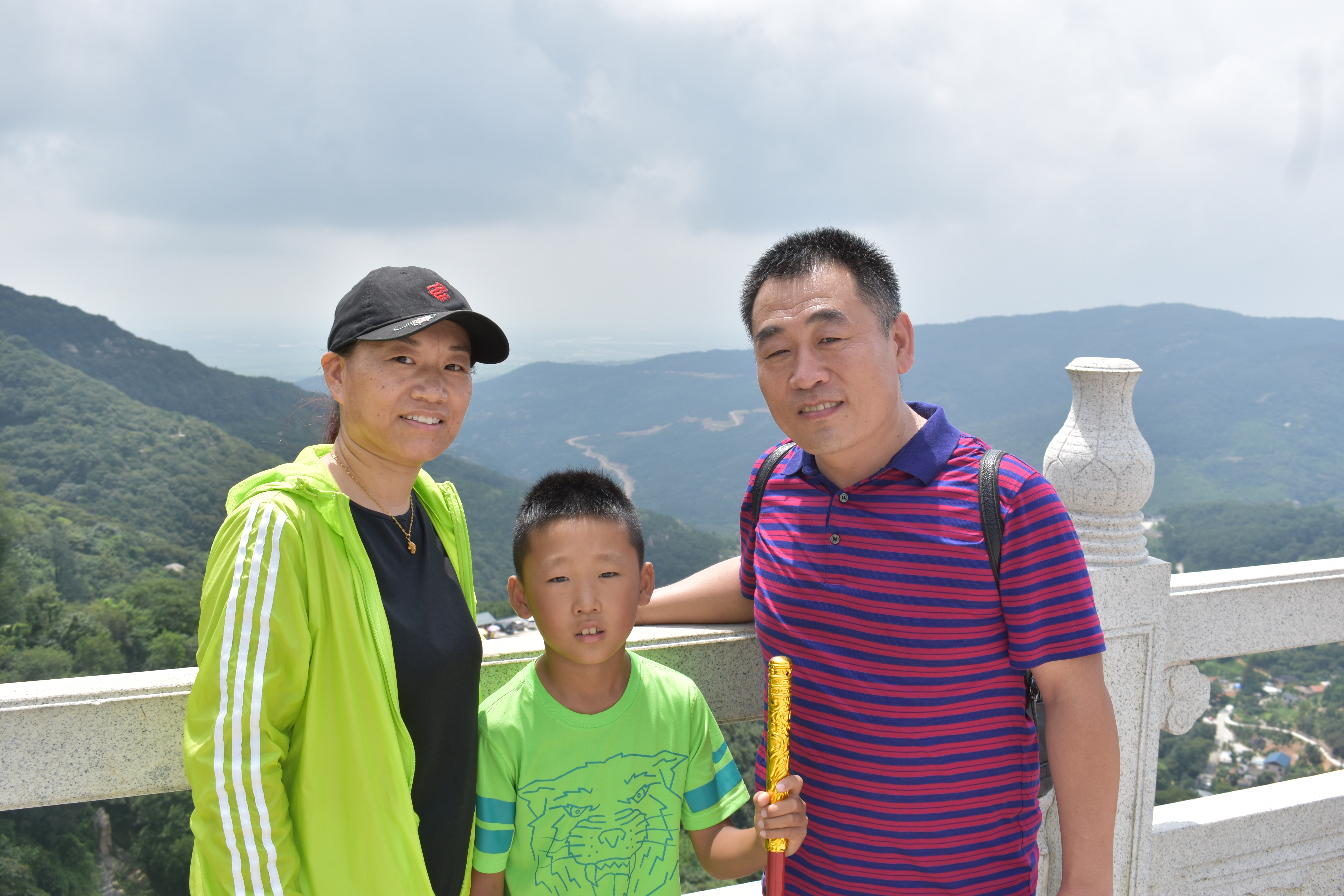 爬到江蘇最高峰——玉女峰的時(shí)候,大家一起拍了合照,站在山巔,俯首眺望,整個(gè)連云港市盡收眼底,海天一色,甚為壯觀,小家伙們大聲喊:“好美啊。”