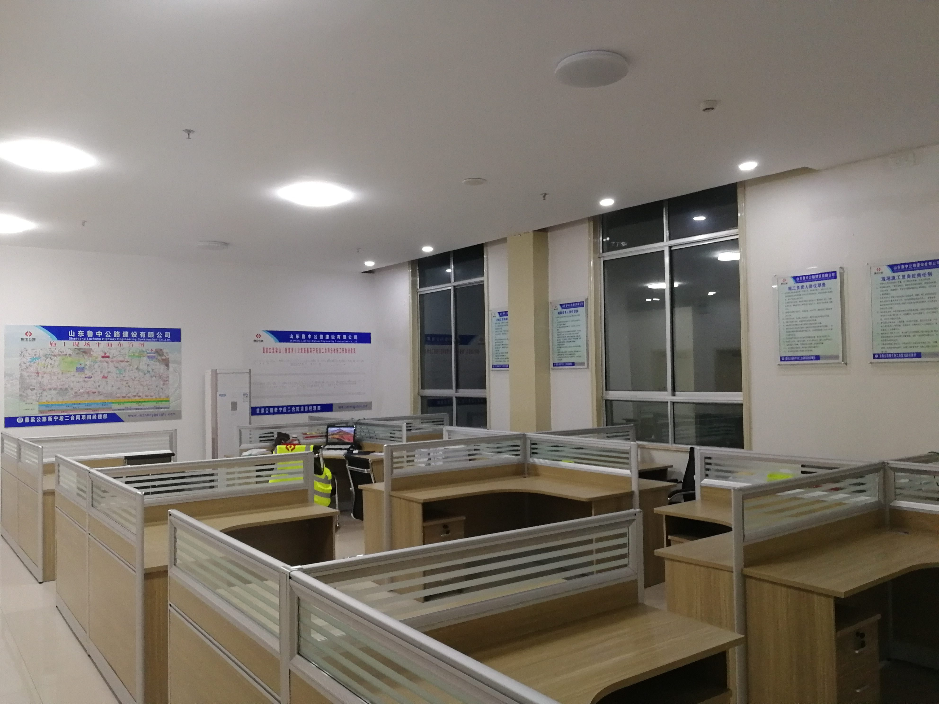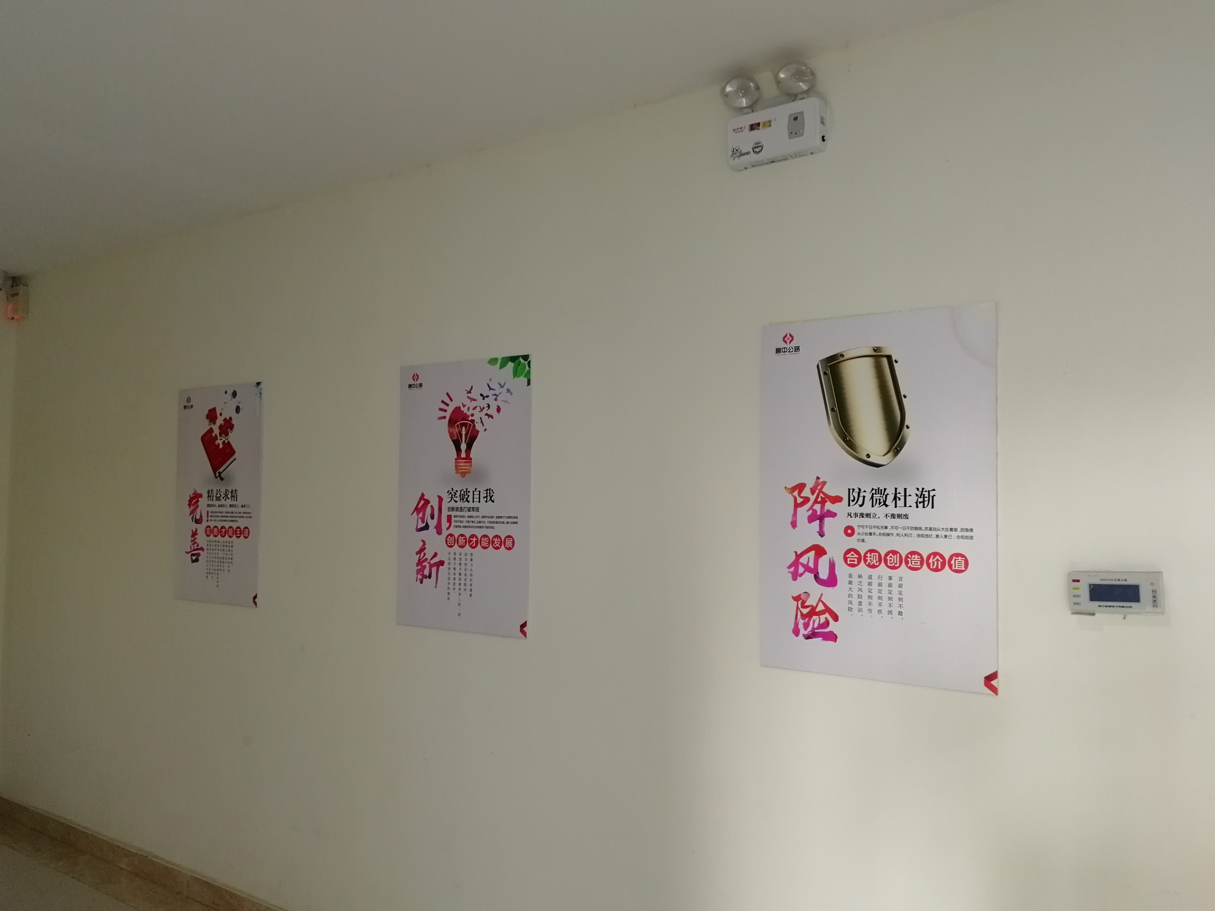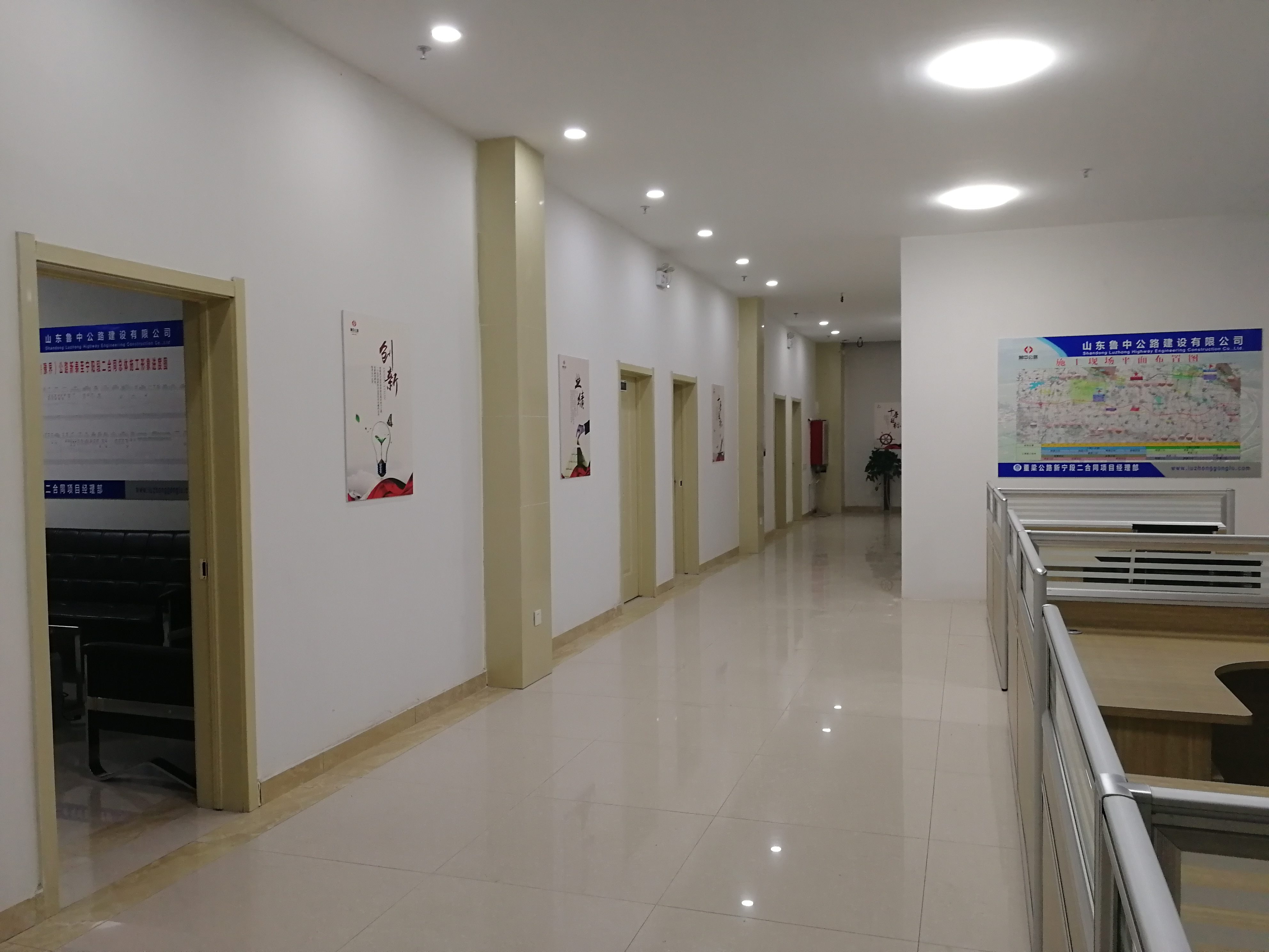 推開(kāi)項(xiàng)目部大門,進(jìn)入一樓大廳內(nèi),首先映入眼簾的是魯中公路標(biāo)志及文化標(biāo)語(yǔ)。