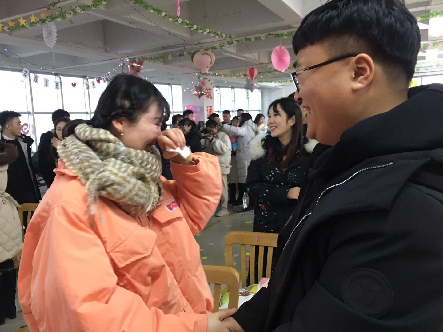 從陌生到熟悉,從開始接過臘八粥都臉紅,到愿意貼近你的脊背跟你匹馬闖天涯,這個(gè)冬日的下午變得幸福又甜蜜。由此特別設(shè)置的“找到你”游戲環(huán)節(jié)卻變得簡(jiǎn)單起來,大屏幕上不斷滾動(dòng)男生的照片,隨機(jī)只有一秒的定格,當(dāng)男生還不確定剛才閃現(xiàn)的是不是自己的時(shí)候,女生早已穿過人群歡呼雀躍著拉住了他的手,并喊出了他的名字。曾經(jīng)預(yù)期找不出時(shí)的臺(tái)本完全用不上了,因?yàn)閻矍椤⒂亚橐言谶@群年輕人之間生了根、發(fā)了芽。