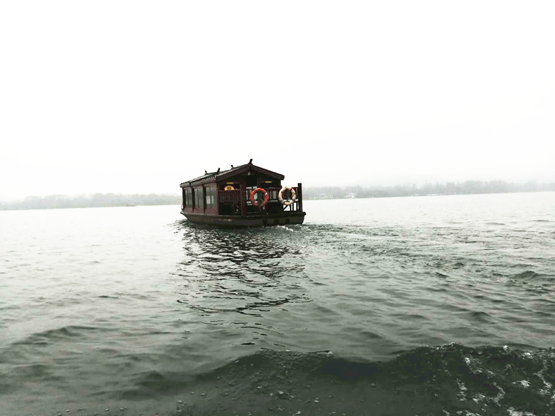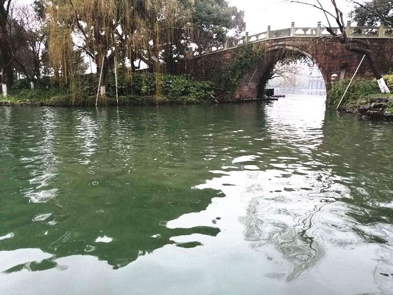 到了西湖,我們在導(dǎo)游的安排下,坐上一艘游船,去近距離探尋西湖的魅力之處。有人說,西湖美美在水上,的確,當(dāng)真正看清了西湖的水之后,才真正領(lǐng)會了這句話的含義。西湖的水,看上去是墨綠色的,像是綠色的紗裙,游船劃過,西湖像是活了一般,翩翩起舞,令人沉醉。沿著水面看向遠(yuǎn)處,又是那樣的平,如同明鏡,沒有一絲雜質(zhì),映照著這方純凈的天地。