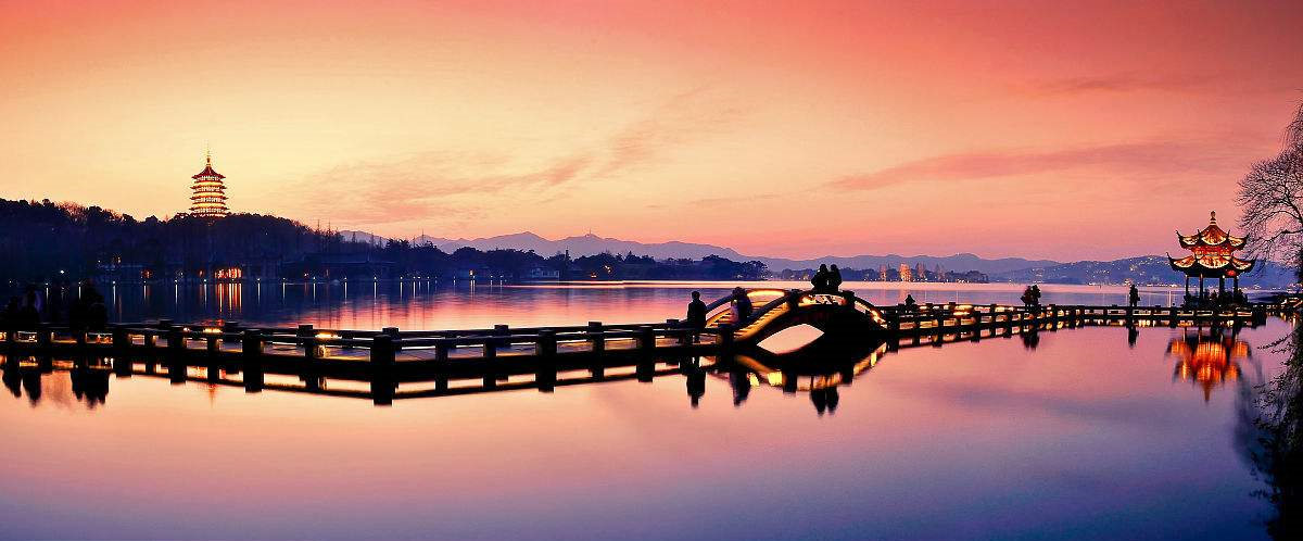 遠(yuǎn)眺西湖,似乎東坡先生當(dāng)年站在船頭,把手拂須,舉杯邀月,對湖吟唱“欲把西湖比西子,淡妝濃抹總相宜”的情景,還忽隱忽現(xiàn)的飄蕩在西湖上。