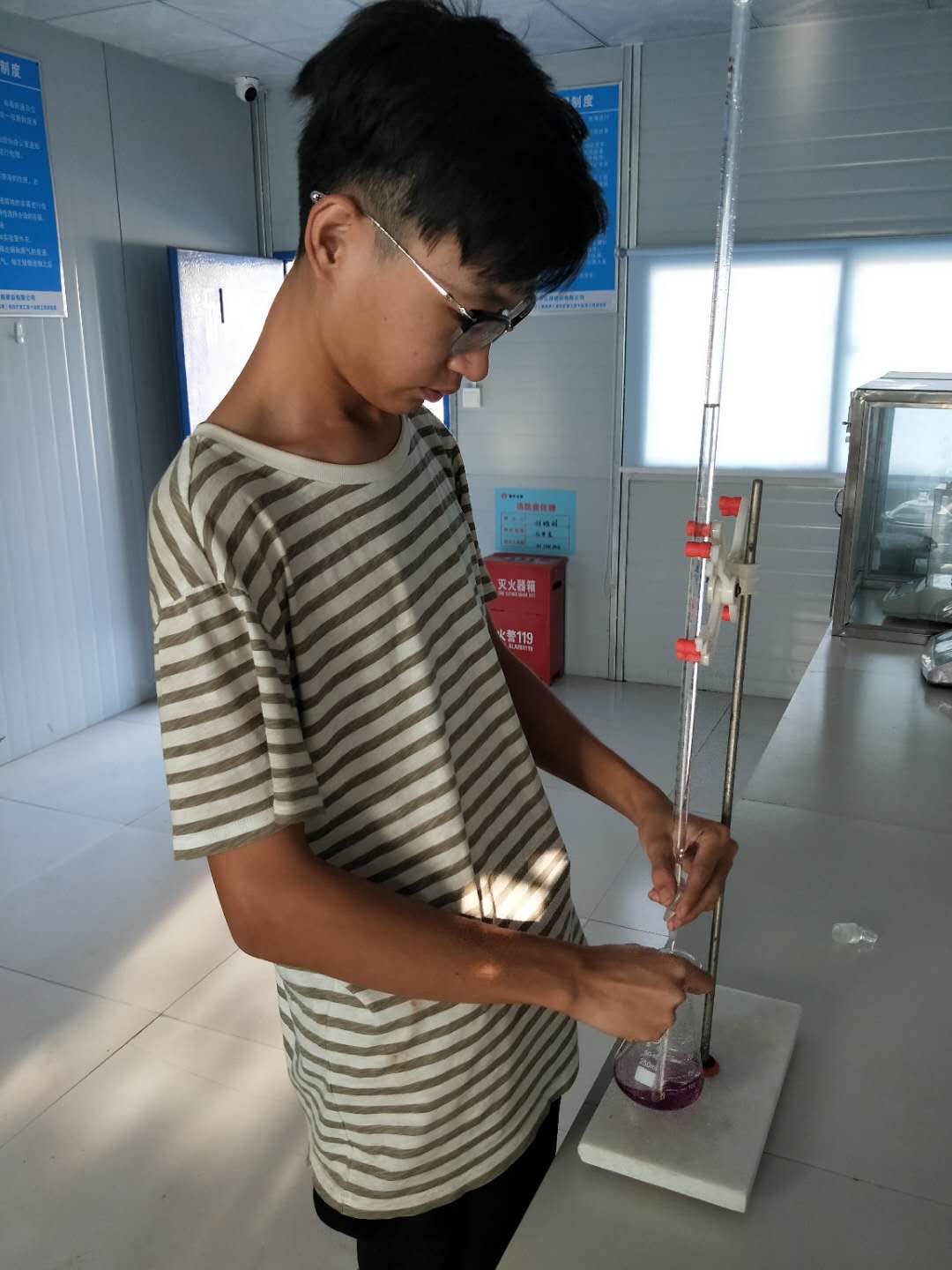 項(xiàng)目部在春日暖陽的映襯下明亮又透徹,在門外就聽到里面“噼噼啪啪”的鍵盤敲擊聲和圖紙的翻閱聲,打印機(jī)、裝釘機(jī)時(shí)不時(shí)出來湊個(gè)熱鬧,試驗(yàn)室里石灰鈣鎂含量滴定試管搖晃時(shí)猶如小“沙錘”般悅耳。