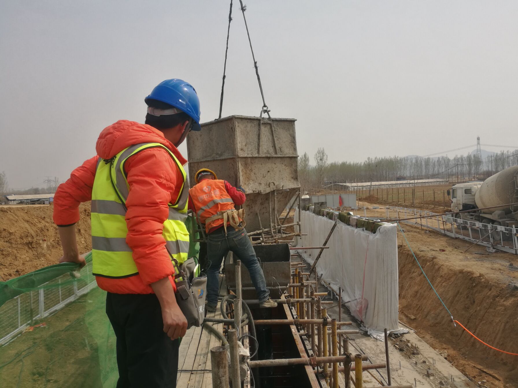 在緊張的工期內,更好的保證施工質量和形象,是我們不斷最求的目標。施工中,我們積極應用新技術、新設備、新工藝,其中預制梁板采用5mm厚鋼板+1mm厚不銹鋼板定型鋼模板,所有預留孔采用機械成孔,保證成孔規(guī)則,在預拼臺座上進行組拼整體,利用龍門吊整體吊裝到位,有效提升了梁板預制質量及外觀形象。同時,為了促進U型橋臺臺身大面積同時施工,采用料石鑲面+混凝土背墻或料石鑲面+片石背墻替代模板的施工,U型臺料石鑲面施工采用激光測平儀測評;基使用鋼筋籠定位鋼管,鋼筋籠現(xiàn)場存放使用特制托架,樁頭鋼筋采用珍珠巖棉包裹,保護樁頭鋼筋在破樁頭時不受損傷;進場鋼筋籠滾焊機并配備機械焊臂、智能彎箍、彎曲機、鐓切套絲流水線等機械化設備,減少人為誤差;建設安全體驗館,通過切身體驗讓員工重視安全,懂得安全;建立農(nóng)民工培訓學校,通過培訓提升農(nóng)民工素質,保證工程質量等等,這一系列的有效措施,極大提升了施工質量及形象。