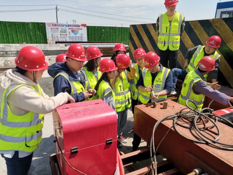 五一當天,新寧項目部為了加深內(nèi)業(yè)資料人員對施工現(xiàn)場的了解,確保內(nèi)業(yè)資料能夠與現(xiàn)場數(shù)據(jù)相結合,提升內(nèi)業(yè)人員工作素質,組織全體內(nèi)業(yè)工作人員前往一分部觀摩學習先張法預應力空心板施工工藝。