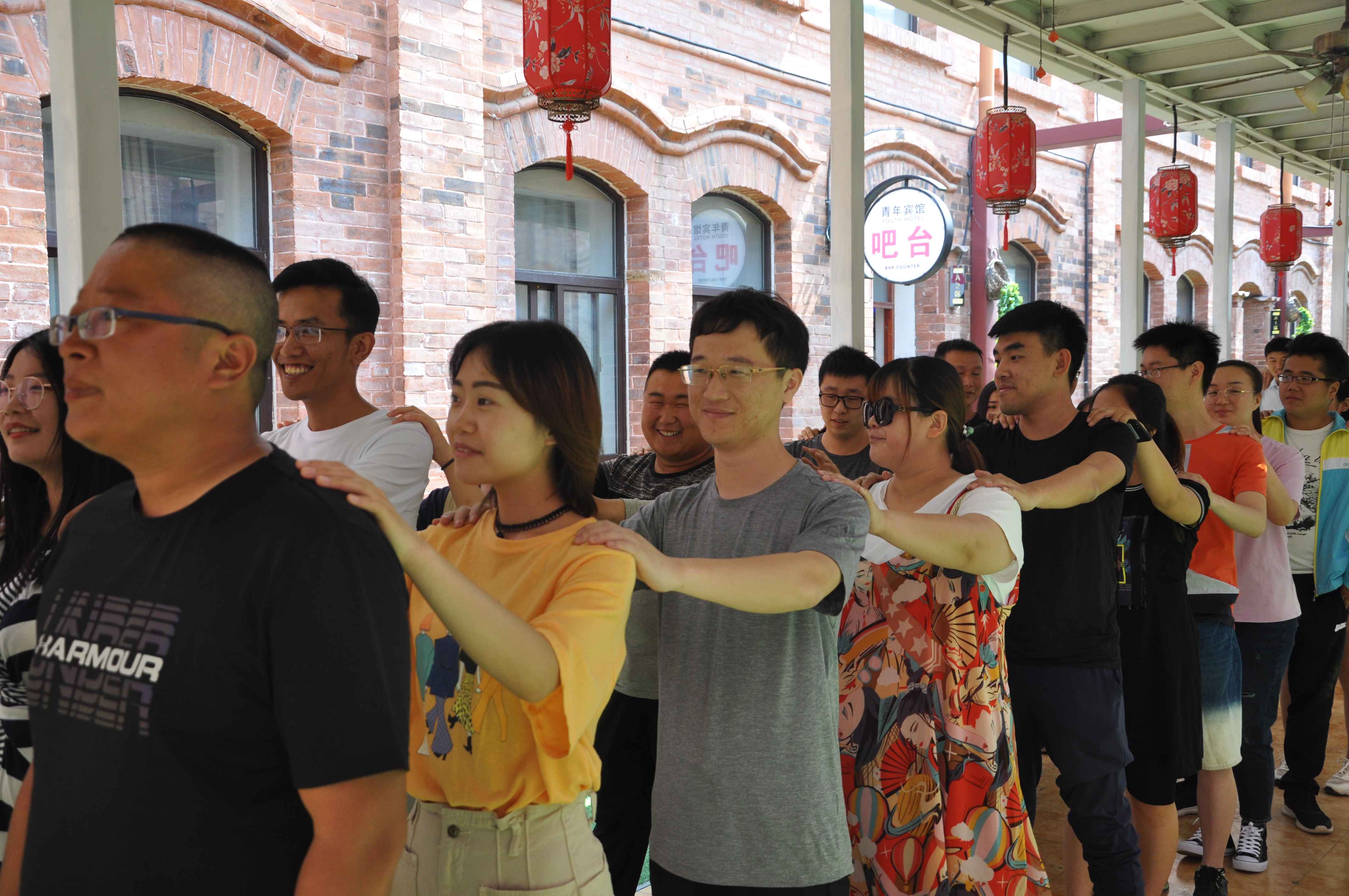 游覽結(jié)束后,一行年輕人在古城空地玩起了小游戲,他們的熱情使古城變得更加生動(dòng)。游戲的魅力瞬間感染了大家,協(xié)作過(guò)程中,已由先前的陌生、羞澀,變得熟悉、親密起來(lái)。