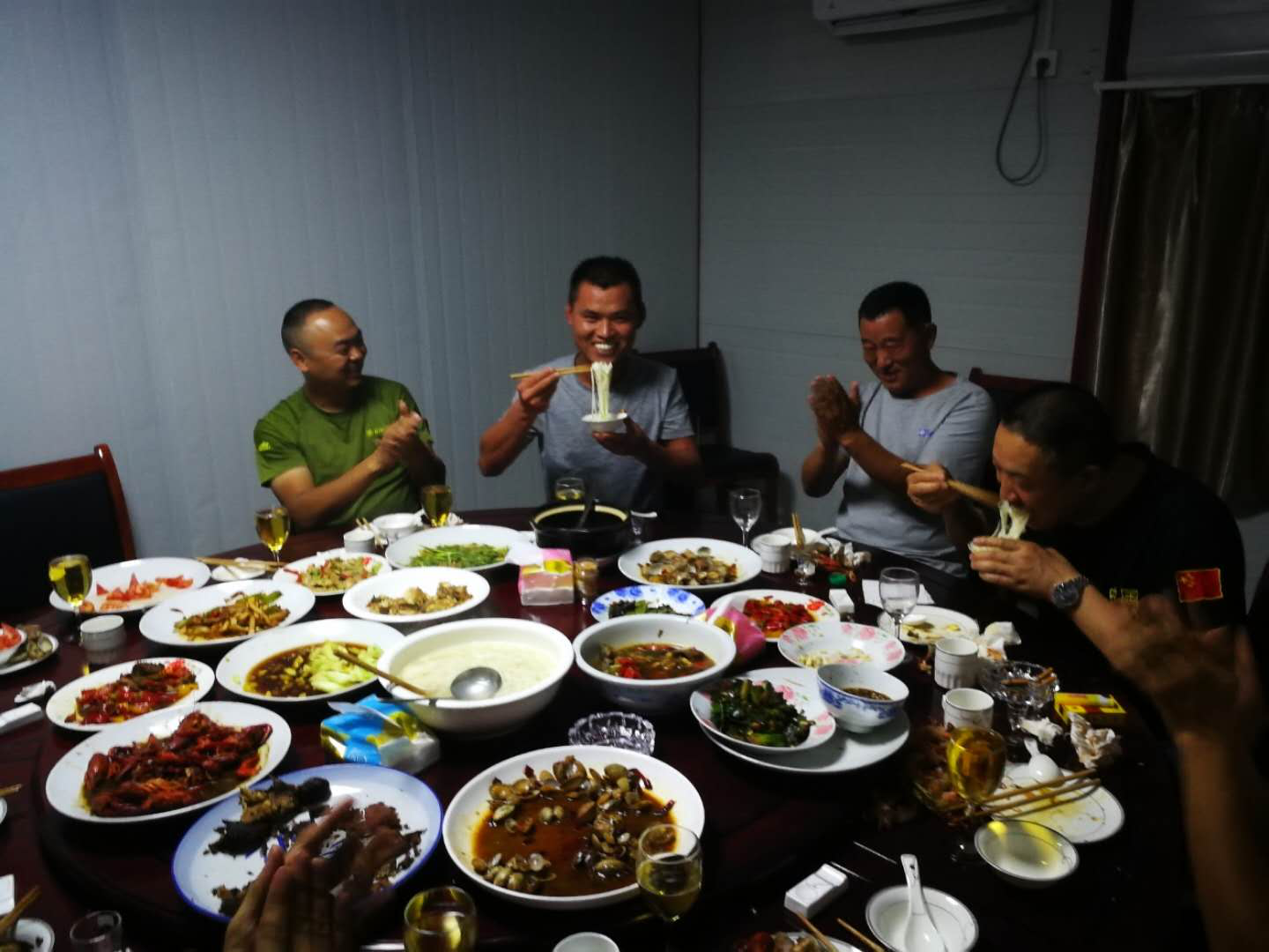 6月5日晚,西南工程分公司興贛北延項(xiàng)目為侯傳林、朱延茂補(bǔ)辦了生日聚餐,后勤科提前準(zhǔn)備好了一桌豐盛的晚餐,大家共同舉杯,為侯師傅與朱延茂送上生日祝福。52歲的侯師傅說:在工地這么多年了,從來沒有好好過生日,這是第一次公司給組織聚餐過生日,真是太開心了。朱延茂也說:能在工地跟大家一起過生日,非常的有意義,感覺到了公司對(duì)職工的親切的關(guān)懷??吹剿麄兒喜粩n嘴的笑臉,大家也都放下一天的疲憊,暫時(shí)放下工作的壓力,共同歡樂其中了。聚餐最后,后勤科長(zhǎng)孫瑞文為兩位“壽星”煮了長(zhǎng)壽面,祝愿侯師傅與朱延茂健康長(zhǎng)壽。