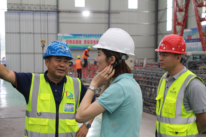 下午16:10分,在施工現(xiàn)場(chǎng)采訪結(jié)束后,節(jié)目組一行來(lái)到我部華豐梁場(chǎng),采訪過(guò)程中,大家先后對(duì)華豐梁場(chǎng)的場(chǎng)站標(biāo)準(zhǔn)化建設(shè);鋼筋加工場(chǎng)標(biāo)準(zhǔn)化、智能化、機(jī)械化建設(shè);施工管理標(biāo)準(zhǔn)化建設(shè)等工作內(nèi)容進(jìn)行了采訪??偙O(jiān)辦高總代表新寧項(xiàng)目接受了采訪,并就相關(guān)問(wèn)題進(jìn)行了解答。