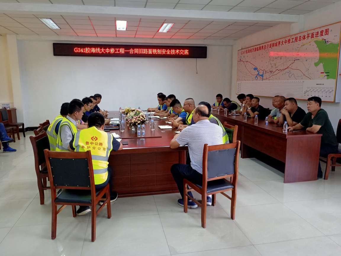 2019年6月29日上午,G341膠海線沂源臨朐界至沂源鋼城界段大中修工程開工之際,G341膠海線沂源臨朐界至沂源鋼城界段大中修工程一合同項目召開由總監(jiān)辦相關(guān)負(fù)責(zé)人、勞務(wù)隊伍負(fù)責(zé)人、項目部全體人員參加的路面銑刨安全、技術(shù)交底會議。