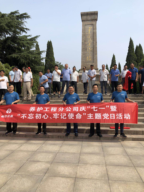 養(yǎng)護(hù)黨支部黨員在萊蕪戰(zhàn)役紀(jì)念碑前合影。
