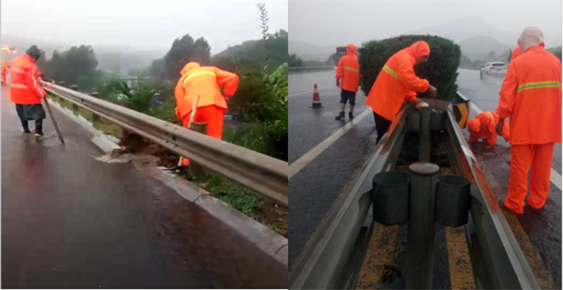 應(yīng)急搶險(xiǎn),水毀處置,疏通中央分隔帶淤積雜物。