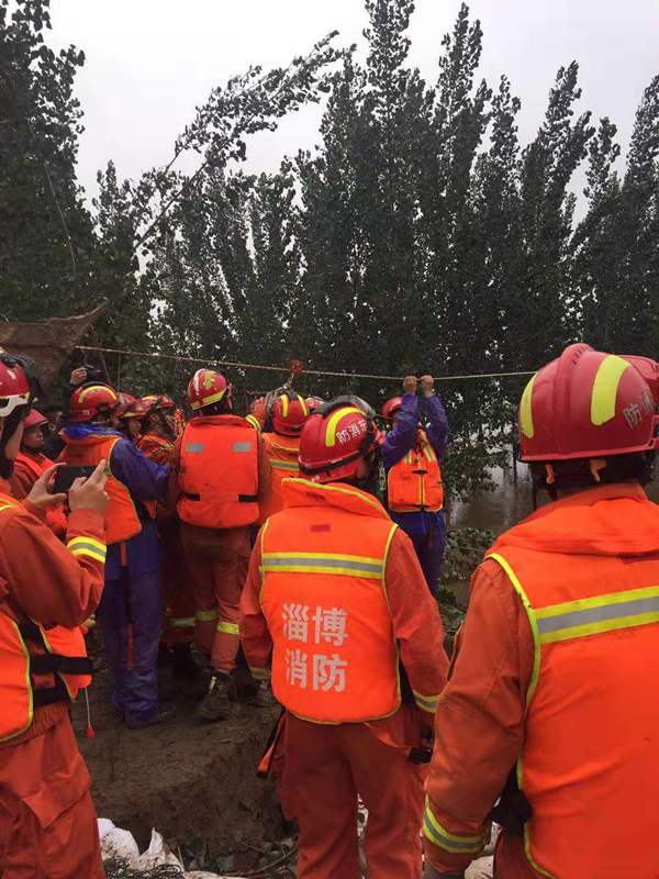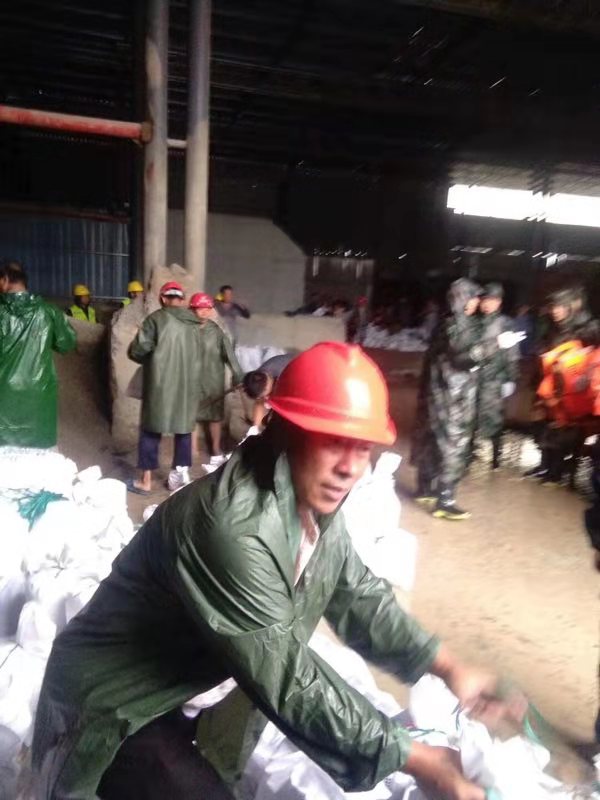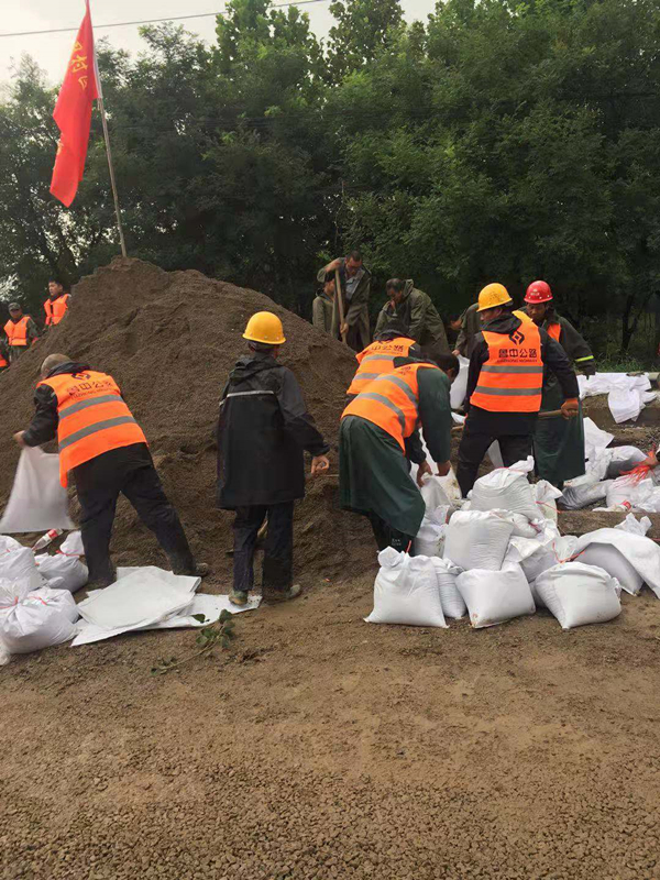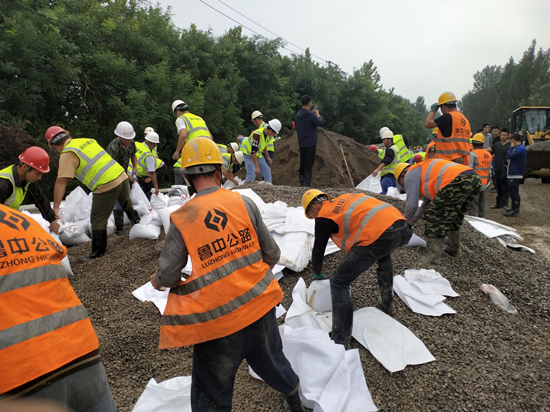 受“利奇馬”影響,8月10號(hào)到12號(hào)淄博市普降暴雨,孝婦河水位暴漲,袁家橋村段發(fā)生兩處50米、10米的決口,附近村莊被淹,情況危急。在項(xiàng)目自身受到臺(tái)風(fēng)與洪水影響的情況下,魯中公路經(jīng)開區(qū)分公司自8月11日17時(shí)開始,分批次投入搶險(xiǎn)人員34人,搶險(xiǎn)車輛7臺(tái),冒雨投入到抗洪救災(zāi)搶險(xiǎn)工作中。8月12日4時(shí),魯中公路柳園路孝婦河橋項(xiàng)目部又組織11人救援小組與一臺(tái)裝載機(jī)雨中再次奔赴搶險(xiǎn)救援現(xiàn)場(chǎng)。在省、市、開發(fā)區(qū)、及市交通運(yùn)輸局等領(lǐng)導(dǎo)的督導(dǎo)下,水利專家的指導(dǎo)下,魯中公路與500多名武警官兵、公安干警、消防戰(zhàn)士,及經(jīng)開區(qū)管委會(huì)、經(jīng)開區(qū)各施工單位,當(dāng)?shù)孛癖姷?000多人經(jīng)過兩天近50個(gè)小時(shí)的日夜奮戰(zhàn),8月13日下午16時(shí),袁家橋段缺口成功堵住。
