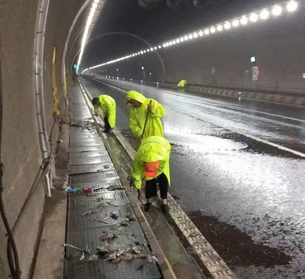 青蘭小修項(xiàng)目清理隧道口沖刷的泥石,疏通隧道內(nèi)泄水口堵塞物
