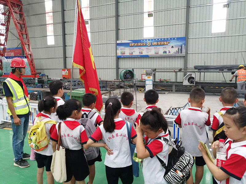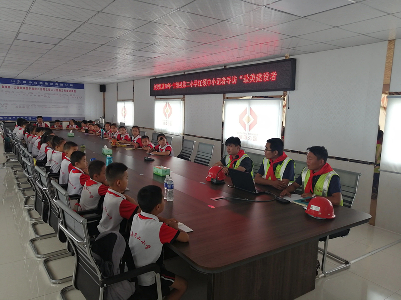 2019年8月24日,寧陽縣第二小學的30名少先隊員在輔導員老師的帶領下,帶著這些疑問來到了山東魯中公路建設有限公司新寧項目華豐預制梁場,開展了“我與祖國共成長,爭做小小追夢人”紅領巾尋訪“最美建設者”的活動。