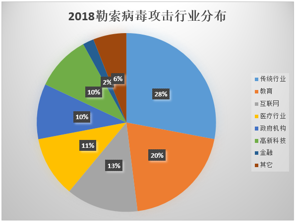 根據(jù)大數(shù)據(jù)統(tǒng)計(jì),勒索病毒在全國(guó)各地均有流竄,尤其以山東、河南、浙江、廣東等地最為嚴(yán)重。作為一款流氓軟件,勒索病毒的下手對(duì)象倒看出了其極大的性格分裂,他一直“偏愛(ài)”傳統(tǒng)的端莊的大方的受害對(duì)象。通過(guò)2018年勒索病毒攻擊行業(yè)分布可以看出,傳統(tǒng)行業(yè)、教育、互聯(lián)網(wǎng)行業(yè)最為嚴(yán)重,醫(yī)療、政府機(jī)構(gòu)緊隨其后。事關(guān)國(guó)計(jì)民生的各個(gè)行業(yè),一旦社會(huì)長(zhǎng)期依賴的基礎(chǔ)遭受攻擊,將帶來(lái)難以估計(jì),且不可逆轉(zhuǎn)的損失。