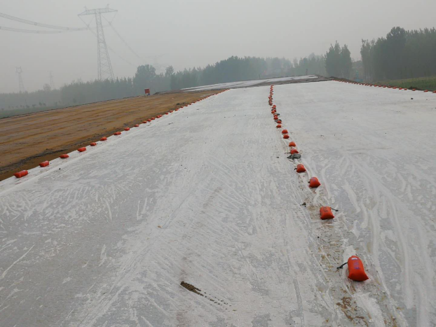 底基層采用覆蓋土工布+塑料薄膜+內(nèi)設(shè)微噴帶養(yǎng)護(hù)方式