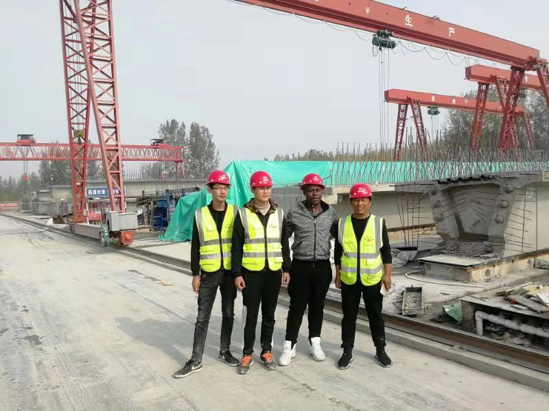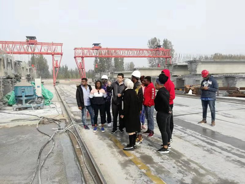 交院隨行老師向外國留學生講解了箱梁張拉、壓漿情況