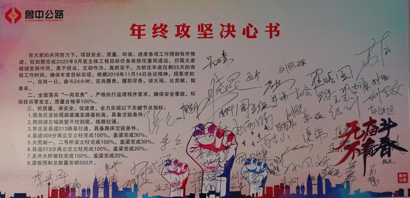 2019年11月15日,青蘭項目部全體干部員工在《年終攻堅決心書》上莊嚴地簽下了自己的名字。