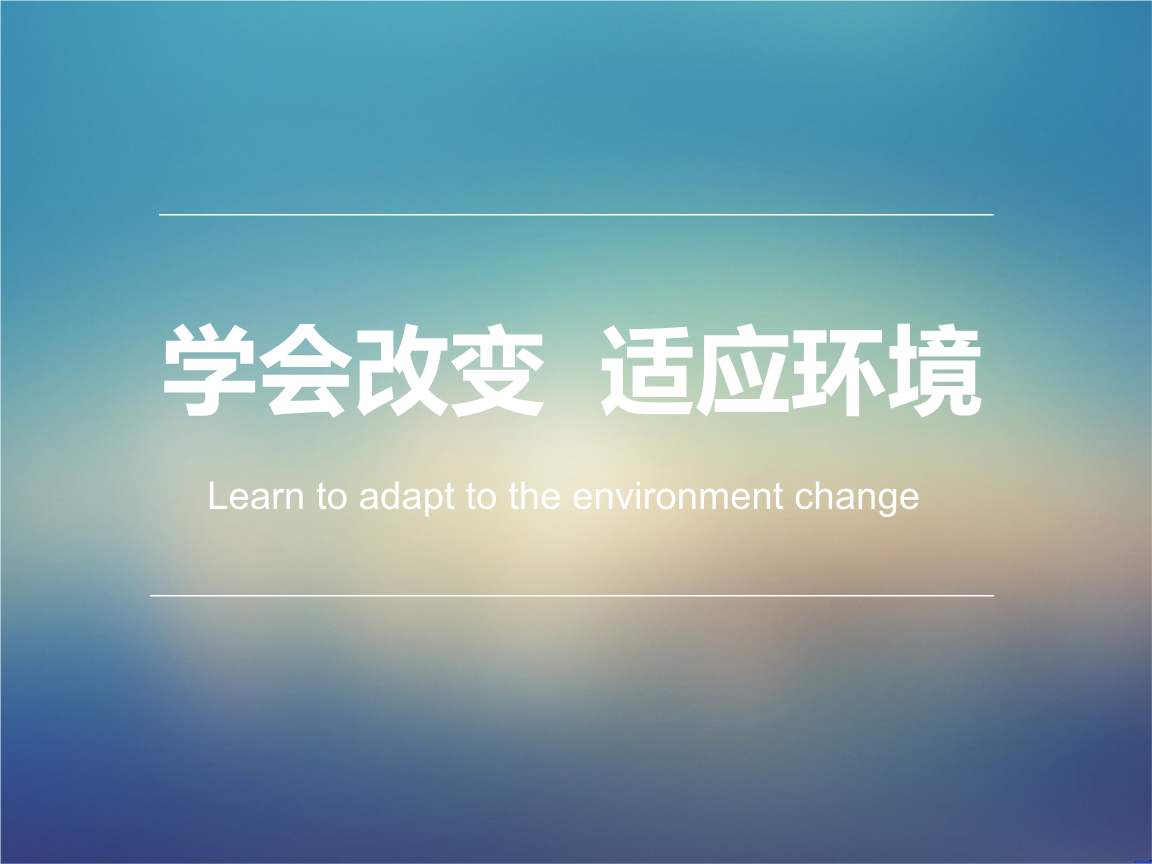 首先適應(yīng)“改變”是一種接受的過程:變化萬千的環(huán)境中,不可能一成不變。不接受競爭日益激烈的現(xiàn)狀,個(gè)人是永遠(yuǎn)得不到進(jìn)步的。接受是一種姿態(tài),是一種個(gè)人敢于面對的精神體現(xiàn)。所以適應(yīng)改變就要先接受改變,接受才可以談及如何面對,這種接受只能是主動的樂觀的,被動的悲觀的接受現(xiàn)狀會寸步難行。