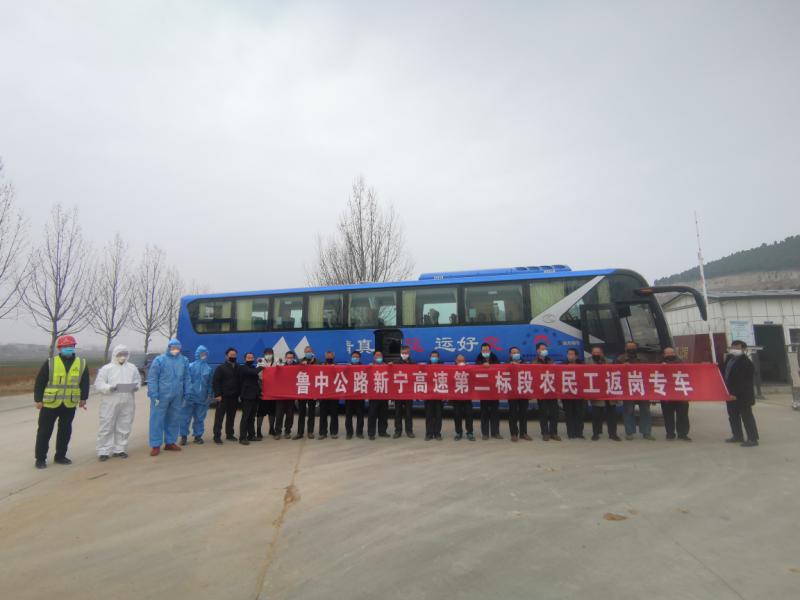 為了確保新寧高速春季大干熱潮盡快展開,結合目前疫情現(xiàn)狀、人員出行不便等情況,新寧二標項目部決定包車赴農民工所在地接回返崗務工人員。二分部相關負責人積極與寧陽縣新冠肺炎疫情處置工作領導小組(指揮部)辦公室、寧陽縣交通運輸局、泰安市交運集團有限公司及出發(fā)地、目的地鄉(xiāng)鎮(zhèn)政府充分溝通、協(xié)調,確保返崗人員“點對點”對接、“零風險”返崗。