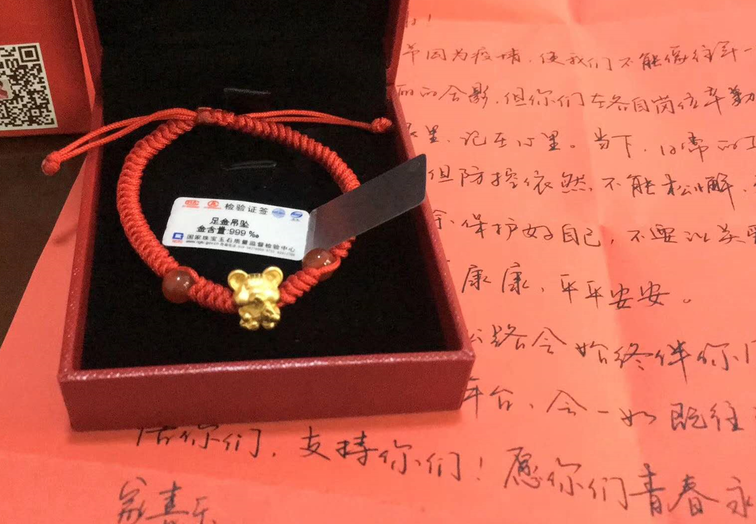 今年公司為女員工們準(zhǔn)備的節(jié)日禮物是一串寓意著吉祥平安的足金鼠轉(zhuǎn)運(yùn)珠手鏈,在這個特殊日子中,寄托了公司對每位女員工的祝福:“數(shù)(鼠)這些美麗的姑娘們最健康!最幸福!”