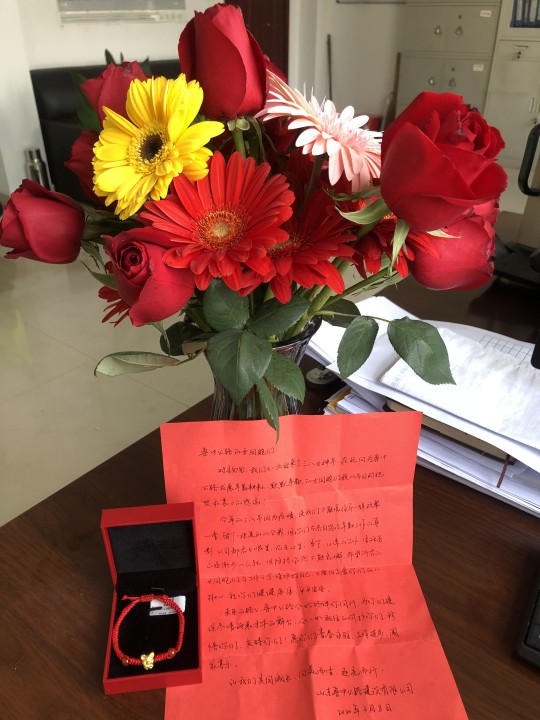今年由于新冠肺炎疫情的原因,使我們無法和往年一樣齊聚公司歡度節(jié)日,隔離疫情不隔離愛,身在工地的我們收到了來自公司的禮物,和分公司準(zhǔn)備的鮮花,公司的用心準(zhǔn)備,暖暖的慰問話語,寄托了公司對(duì)我們每一位女員工的祝福,雖不能相聚但我們的心一直和公司相連。