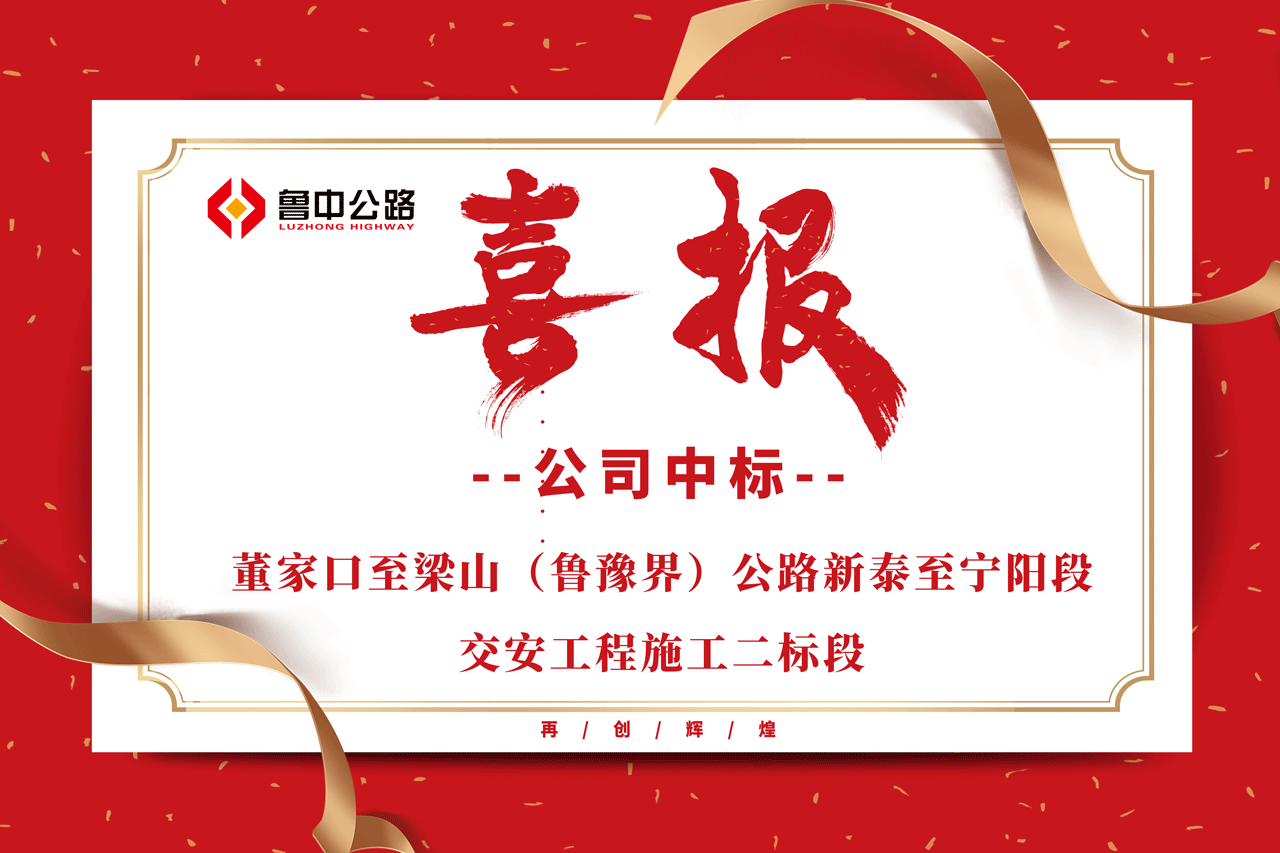 公司近日收到業(yè)主的中標(biāo)通知書,中標(biāo)董家口至梁山(魯豫界)公路新泰至寧陽段交安工程施工二標(biāo)段。