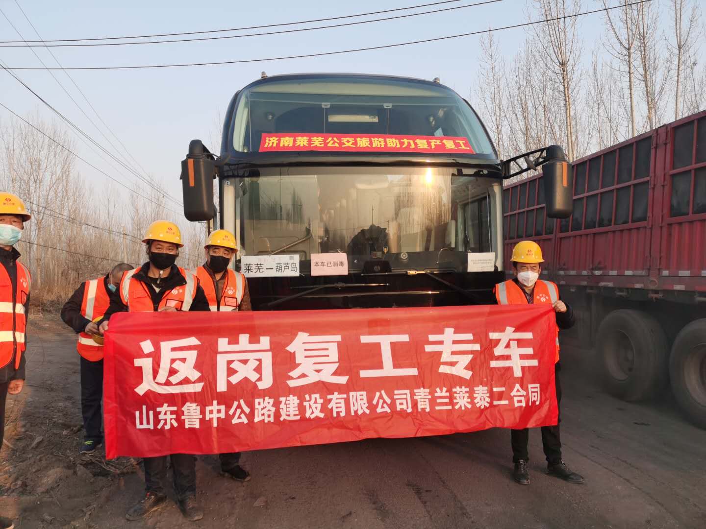 2020年2月27日下午18:00,青蘭項(xiàng)目部首趟由萊蕪區(qū)發(fā)往河北保定的跨省返崗復(fù)工包車,經(jīng)過(guò)12小時(shí)、1000多公里的長(zhǎng)途跋涉,順利返回,在青蘭萊泰七個(gè)標(biāo)段中,率先拉開(kāi)了“點(diǎn)對(duì)點(diǎn)”包車返崗復(fù)工的序幕。