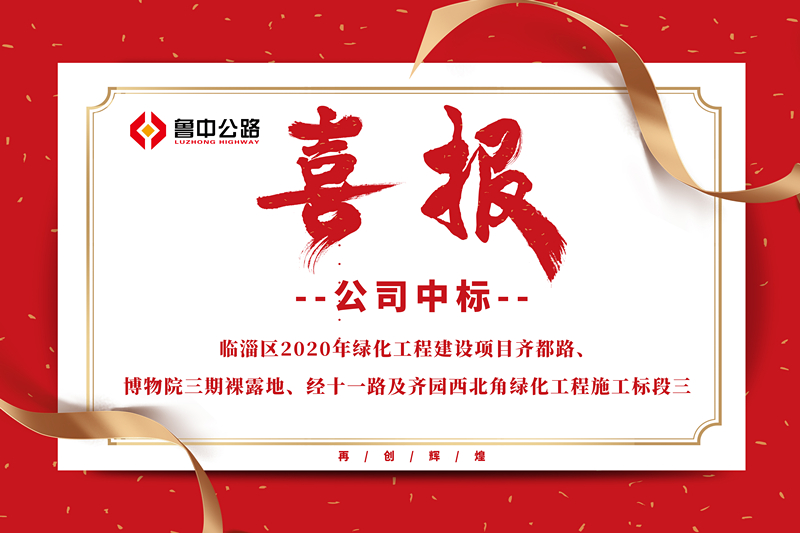 近日,公司收到中標(biāo)通知書,中標(biāo)臨淄區(qū)2020年綠化工程建設(shè)項目齊都路、博物院三期裸露地、經(jīng)十一路及齊園西北角綠化工程施工標(biāo)段三。