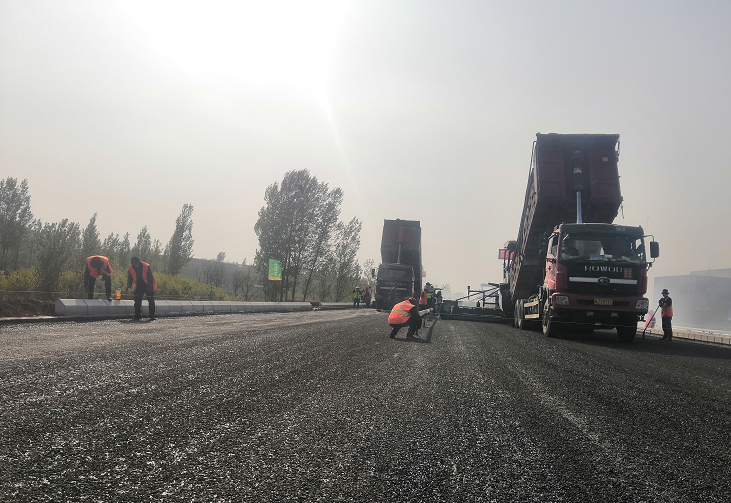 2020年4月15日下午2:45分,青蘭高速公路萊蕪至泰安段改擴建工程二標段大粒徑透水性瀝青碎石柔性基層試驗段順利在K19+925-K20+324左幅開工。