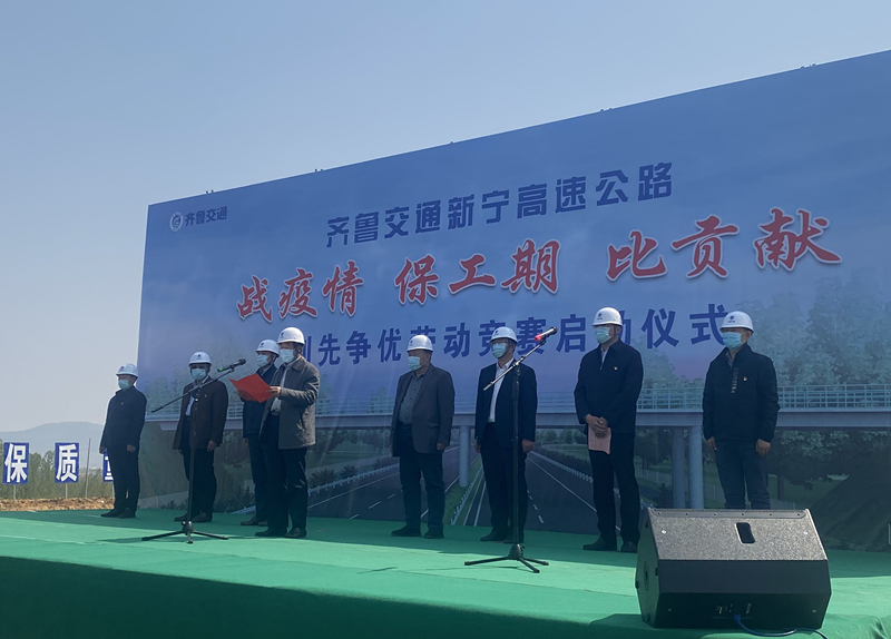 儀式最后,齊魯新寧高速公路有限公司總經(jīng)理曹政宣布“戰(zhàn)疫情、保工期、比貢獻”創(chuàng)先爭優(yōu)勞動競賽活動正式開始,吹響了堅決打贏疫情防控阻擊戰(zhàn)以及工程建設攻堅戰(zhàn)、確保新寧高速公路按期建成通車的沖鋒號!