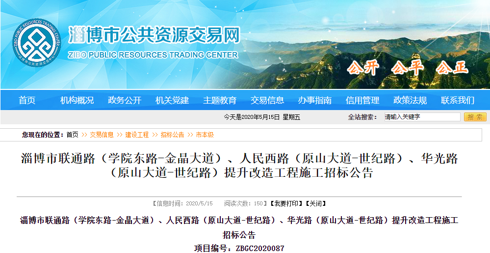 淄博市聯(lián)通路(學(xué)院東路-金晶大道)、人民西路(原山大道-世紀(jì)路)、華光路(原山大道-世紀(jì)路)提升改造工程施工招標(biāo)公告