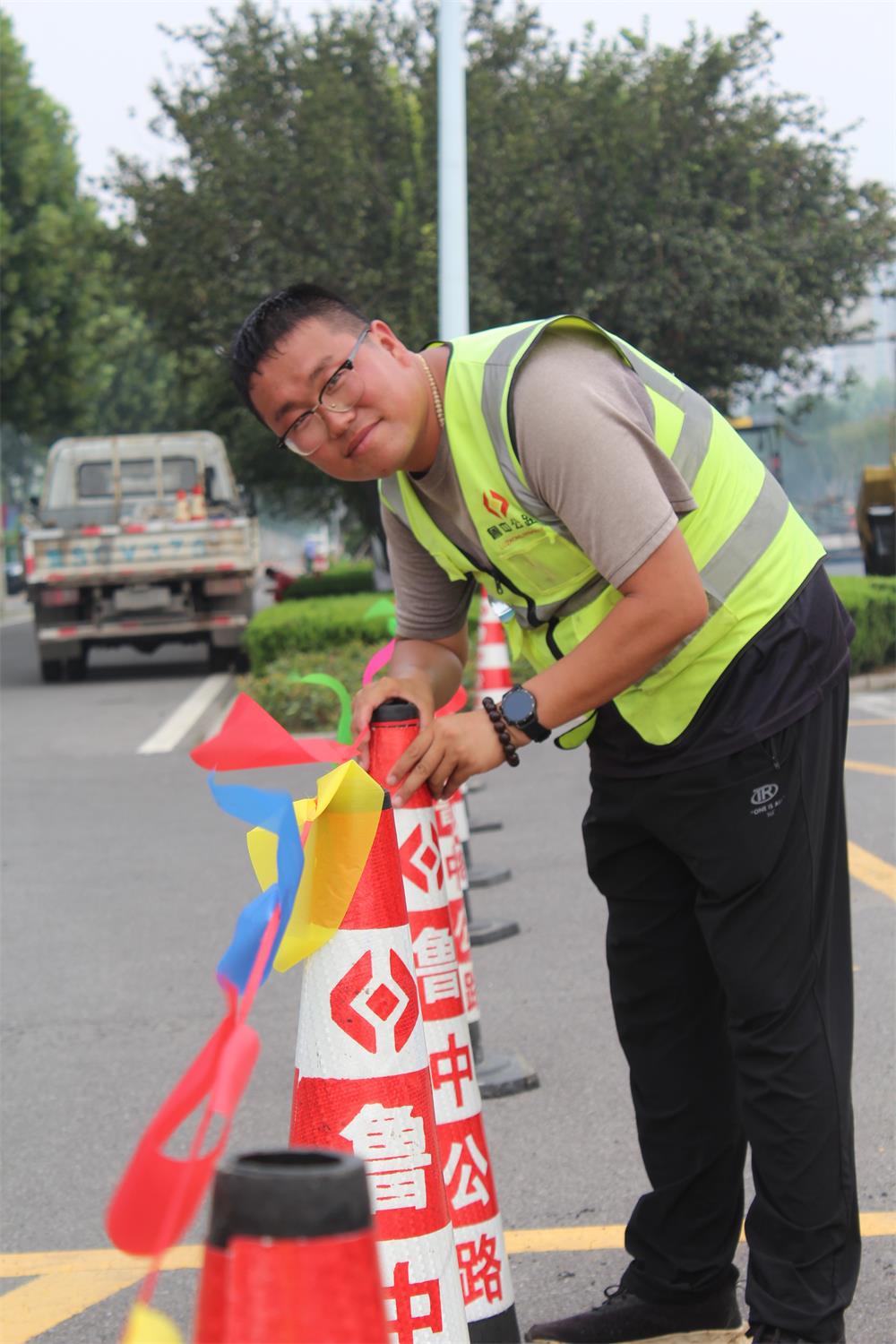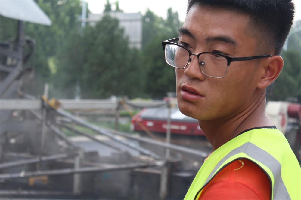 早晨天剛亮他們就已經(jīng)從駐地出發(fā)了,炙熱的太陽下、火一樣的高溫,160度的瀝青料攤鋪現(xiàn)場,滾燙的瀝青混凝土上,看著一張張堅毅、樂觀的笑臉,一個個身著反光服的小伙子,伸手一摸衣服,竟然早被汗水濕透了,汗水滴到腳下,瞬間就沸騰揮發(fā)沒了,問一句:熱嗎?回答:熱,習慣了。就是簡短的一句,再無需多言!聯(lián)通路提升改造工程工期因大型社會活動,被人為縮短,工期時間雖緊質量卻不能放松,小伙子們的回答是:“上一個工程質量優(yōu)秀,這個工程質量必須超越上一個工程”。日復一日,高溫里他們依然在為了心中的目標堅持和堅守。