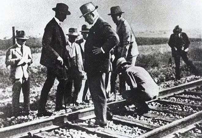 1931年9月18日夜,日本關(guān)東軍鐵路守備隊柳條湖分遣隊隊長河本末守中尉為首一個小分隊以巡視鐵路為名,在奉天(現(xiàn)沈陽)北面約7.5公里處,離東北軍駐地北大營800米處的柳條湖南滿鐵路段上引爆小型炸藥,炸毀了小段鐵路,并將3具身穿東北軍士兵服裝的中國人尸體放在現(xiàn)場,作為東北軍破壞鐵路的證據(jù),誣稱中國軍隊破壞鐵路并襲擊日守各隊。