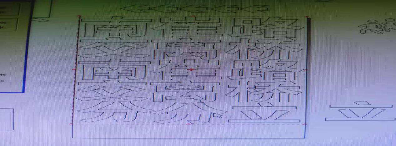 這樣的漢字是八角指示牌的內(nèi)容。正好這批任務(wù)和另一批警示樁的刻字任務(wù)同時(shí)交到刻字室。結(jié)合兩項(xiàng)任務(wù),最終選定了先把八角牌子的內(nèi)容排好版,然后利用字與字的空隙再把警示內(nèi)容加進(jìn)去的方案。方案送到交安分公司領(lǐng)導(dǎo)審閱的時(shí)候,領(lǐng)導(dǎo)給予了我高度肯定和贊揚(yáng)。這樣,我不但把兩個(gè)刻字任務(wù)同時(shí)高質(zhì)量圓滿完成了,也收獲了工作的成就感,及節(jié)約帶來的幸福感。
