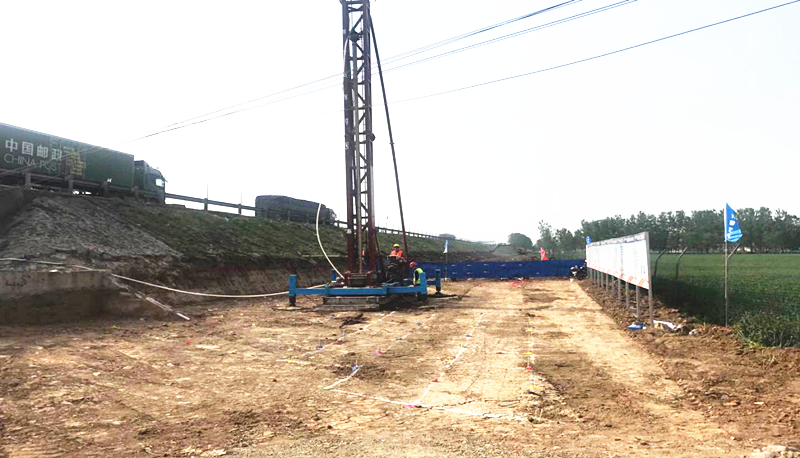 2018年4月21日,漿噴樁首件工程順利展開(kāi),標(biāo)志著該分項(xiàng)工程正式展開(kāi)
