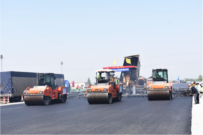 2019年5月6日,京滬高速公路萊蕪至臨沂(魯蘇界)段改擴(kuò)建工程十標(biāo)段瀝青下面層首件施工。