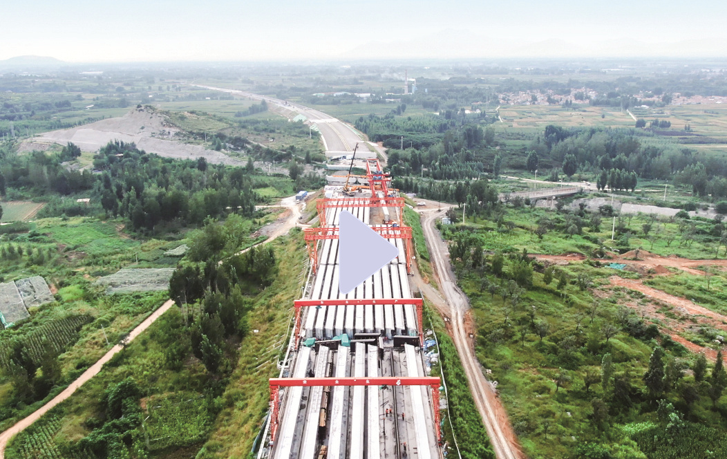 2020.05.28  萊城西互通主線橋3跨36片30m箱梁全部架設(shè)完成。