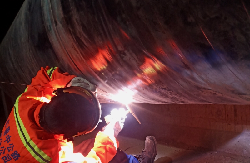 管廊內(nèi)魯中公路展開焊接競(jìng)賽,焊花飛濺,焊縫飽滿均勻