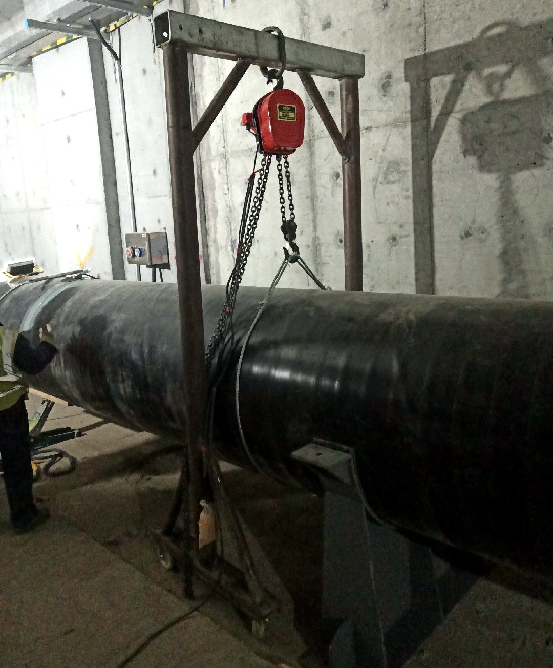 管廊內(nèi)管道采用自行設(shè)計(jì)制造管道移動(dòng)車轉(zhuǎn)運(yùn)