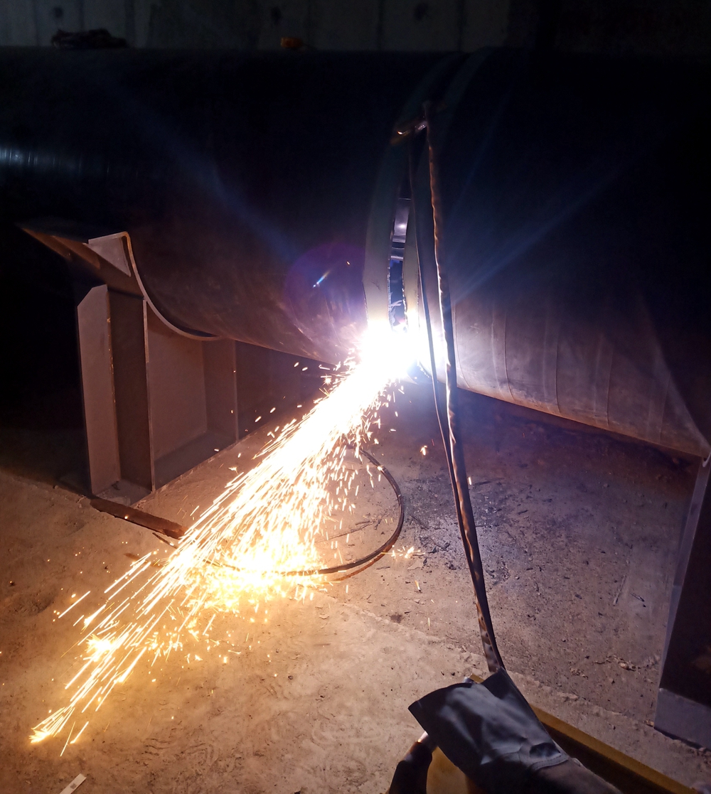 彎頭處的管道,使用等離子切割機(jī)進(jìn)行切割