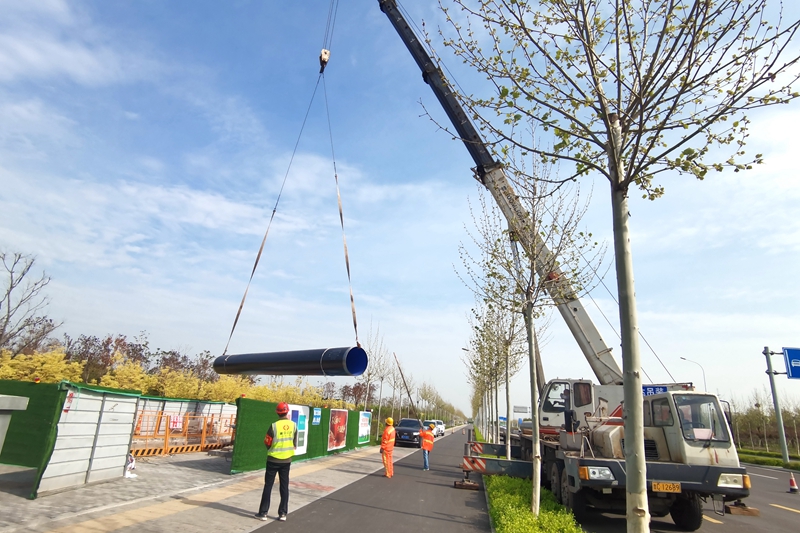管廊內(nèi)外設(shè)專人調(diào)度指揮運(yùn)輸管道