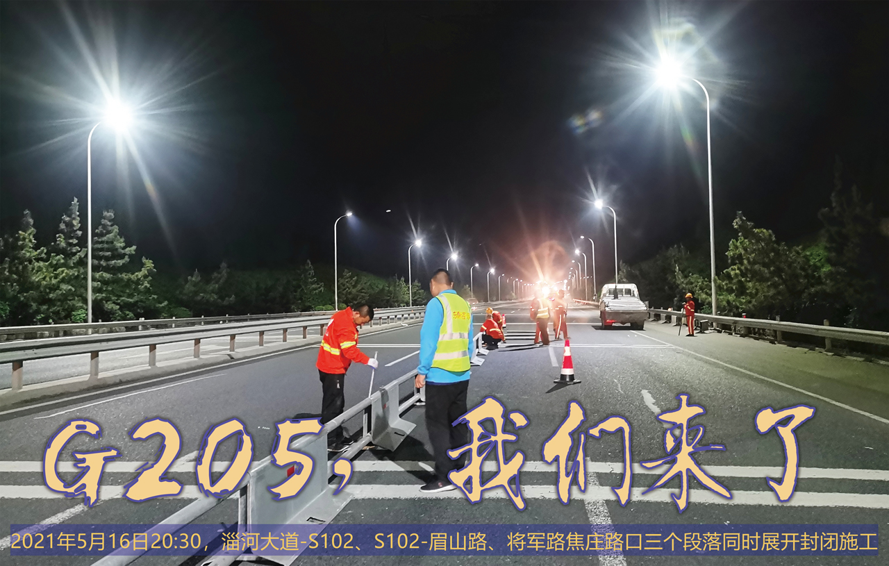 5月16日20:30,淄河大道-S102、S102-眉山路、將軍路焦莊路口三個(gè)段落同時(shí)展開(kāi)封閉施工。經(jīng)過(guò)近8個(gè)小時(shí)的連續(xù)作業(yè),一次完成封閉段落10公里。