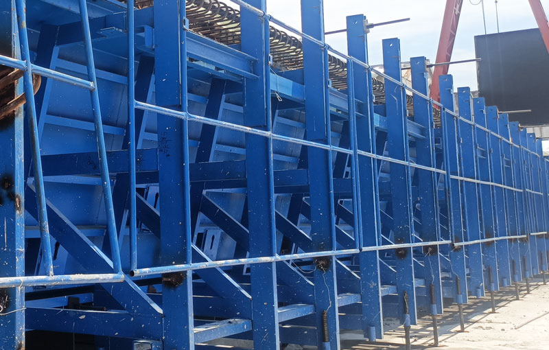 為確保按期生產(chǎn)第一片梁,自梁場規(guī)劃建設(shè)以來,項(xiàng)目部克服諸多困難,嚴(yán)格按照標(biāo)準(zhǔn)化施工程序,堅(jiān)持“轉(zhuǎn)變作風(fēng)、嚴(yán)明紀(jì)律、鼓足干勁、效益優(yōu)先”的工作總基調(diào),提前部署,精心組織,周密安排,上下一心。在項(xiàng)目全體員工的共同努力下,于2天內(nèi)完成箱梁外膜報(bào)檢、底腹板鋼筋報(bào)檢,1天內(nèi)完成箱梁內(nèi)膜、頂板鋼筋報(bào)檢。項(xiàng)目部不斷完善質(zhì)量控制流程,眾志成城,保證了第一片箱梁的按期預(yù)制。
