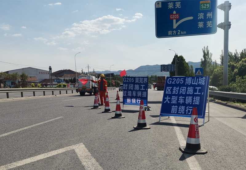 在G205山深線張店、淄川段相繼順利開工后,由第四工程分公司成立的博山分部也于5月18日20:00對(duì)G205山深線姚家峪路口-九龍峪路口段開始封閉交通,進(jìn)行車流導(dǎo)改。